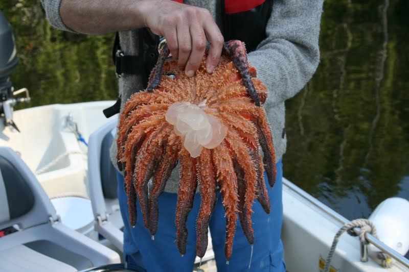 | I know we're supposed to catch crab in our crab trap but I am always so impressed with the Sea Stars we often catch (and release). This may be the biggest one yet. |